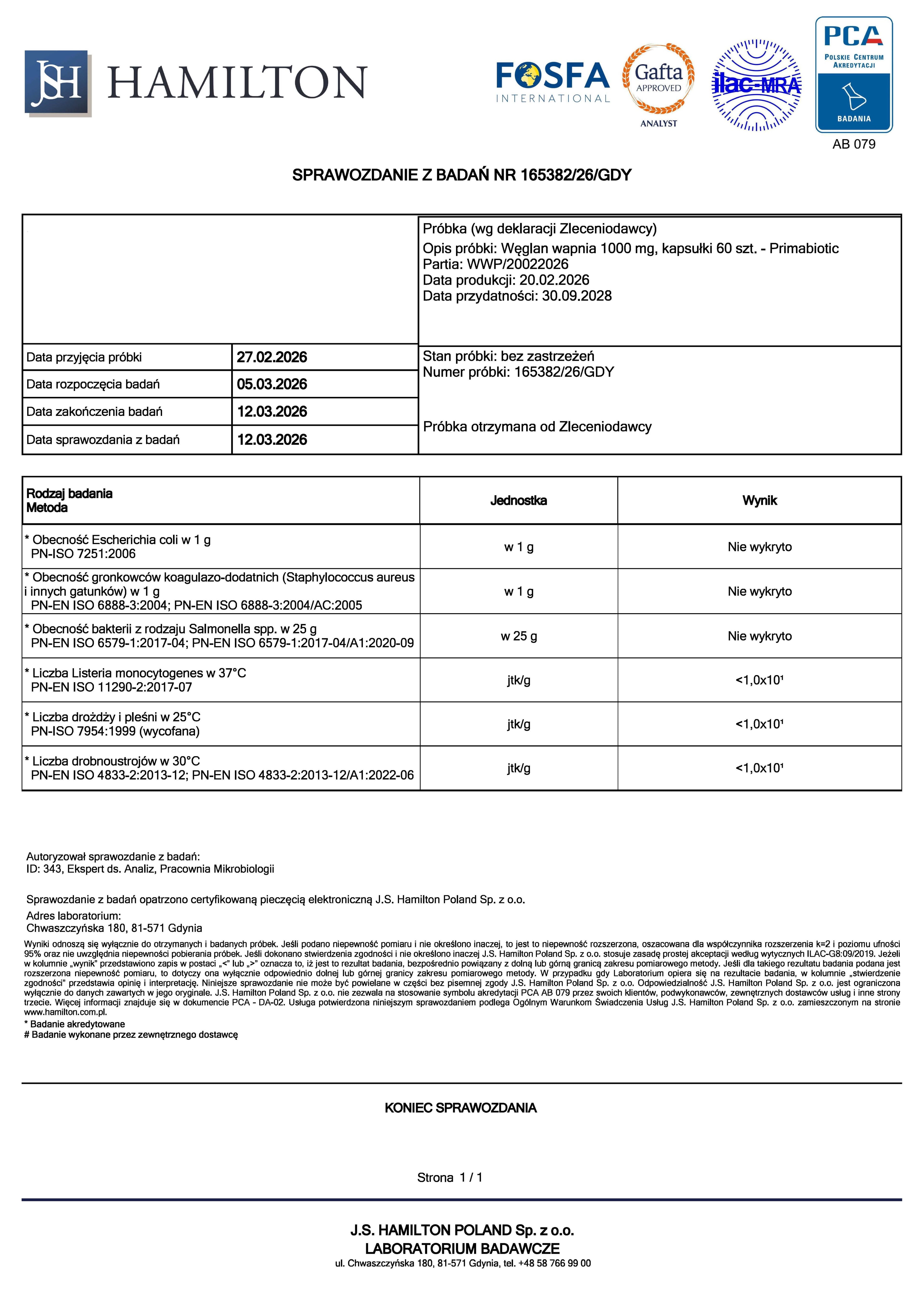 PRIMABIOTIC Calcium Osteo – suplement diety w postaci kapsułek, zawierający wapń w postaci węglanu wapnia.
